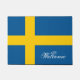 Schwedische Türmatte mit individuellem Willkommenstext für Schweden Zuhause oder Shop. Blau und Gelb. skandinavische Wohngestaltung. Machen Sie Ihre eigene Türmatte für Country-chic Zuhause, Restaurant, Hotel, Business, Büro, Firma, Shop etc. Fügen Sie Ihre eigene Willkommensnachricht, Familienname, Monogramm, Shop-Namen oder lustiges Zitat hinzu. Niedliche Geschenkidee für neue Zuhause-Haus-Erwärmung Party. Großbuchstaben Typografie. Benutzerdefinierter Hintergrund Vintage rustikale Typografie. Anpassbare Dokumentvorlagenvorlage. Erstellen Sie Ihre eigene Eintrittsmatte / Teppich für Eingangstür / Eingangshalle oder Eingangshalle. Wohngestaltung / Dekorationen für Ihr Haus oder Geschäft.