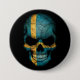 Schwedischer Flaggen-Schädel auf Schwarzem Button