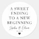 Ein klassischer Black Danke You Wedding Sticker mit "A Sweet Ending to a New Beginning" in einem klassisch-modernen Schriftart. Sie können es einfach mit Ihren Namen und Hochzeitsdatum personalisiert.