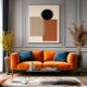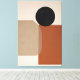Eine minimalistische Komposition, die die Harmonie zwischen geometrischen Formen und erdigen Farben erforscht. Die subtile Kreuzung des schwarzen Kreises mit durchsichtigen Rechtecken legt in einem ruhigen visuellen Raum Ausgewogenheit, Kontrast und Introspektion nahe.