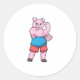Schwein als Bodybuilder mit großem Oberarm Runder Aufkleber