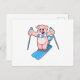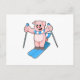 Schwein als Skifahrer mit Skiern und Skistöcken Postkarte