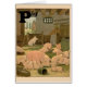 P ist für das Schwein aus einer Kindergeschichten-Illustration des französischen Künstlers Benjamin Rabier. Mutterschwein mit Muttermilch, zusammen mit anderen Familienmitgliedern in einer Lehmhütte auf dem Hof. "Verfügbar auf mehr Produkten" mit dem Link.