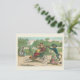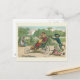 Sehr ungewöhnliches Vintage-Bild eines scheinbar wohlhabenden Schweins, das offensichtlich an Gicht leidet, von einem Affen in einen Rollstuhl gestoßen wird, während andere Tiere aufpassen.