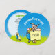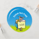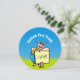 Ein cooles Schwein mit Sonnenbrille über grünem Gras unter blauem Himmel mit einem Schild, das bereit ist, Ihre Nachricht zu übergeben.