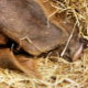 Ein sehr niedliches Schwein schläft tief und fest im Strohbett.