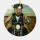 Ein Schwein, das ein Motorrad am Sonnenuntergang im New Mexiko reitet