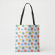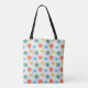 Diese Tote-Tasche hat ein modernes Design von Kreisen mit Linien in orange, gelb, türkis und grün.