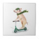Niedliches Ferkel auf einem Roller mit Hut und Schal! Gute Fahrt!
