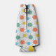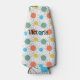 Diese Flasche cooler hat ein modernes Design von Kreisen in der Mitte des Jahrhunderts mit Linien in Orange, Gelb, Türkis und Grün.