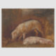 Dieses Design zeigt ein Gemälde des französischen Künstlers Alexandre-Gabriel Decamps (1803-1860). Es zeigt zwei Schweine in einem Stall mit Stroh und Heu auf dem Boden. Die Schweine haben beide rosa Körper. Eines der Schweine ist stehend mit seiner in den Boden geschwungenen Schnauze. Das andere Schwein liegt auf dem Boden; es schläft oder ruht sich einfach aus. Das Originalwerk wurde 1894 gemalt und befindet sich heute im Art Institute of Chicago, USA.