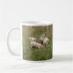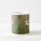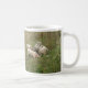 Diese niedliche Tasse zeigt ein schönes Foto einer Gruppe niedlicher Schweine auf einem Feld. Einige der Schweine rutschen auf der Erde herum, während andere auf sie schauen.