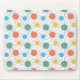 Dieses Mauspad hat ein modernes Design von Kreisen mit Linien in orange, gelb, türkis und grün.