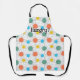Diese Schürze hat ein modernes Kreislaufdesign mit Linien in Orange, Gelb, Türkis und Grün.