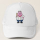 Schweinefleisch als Koch mit rollendem Button Truckerkappe