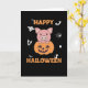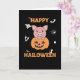 Das Schwein sitzt in einem Kürbis. Die Schweine in einem KürbisGeist sind zu Halloween niedliche Tiere. Kürme mit lustigen Tieren für Kinder. Ein perfektes Kostüm zu Halloween für jeden Schweineliebhaber.