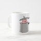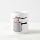 Ein Schwein in einem Topf, der seinen Kopf heraushebt. Dieses Design sieht auf dieser Tasse wirklich effektiv aus