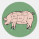 Schweinefleisch schneidet Diagramm, wobei das Happy-Diagramm-Schwein mit allen Beschreibungen der Synonyme "lecker, yummy, salzig..." geteilt wird. T - Shirt, Hunde, Karten, Geschenke.