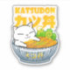 Niedlich und fett in einer Schüssel mit japanischem Essen (丼) sitzend, das ist Schweinekuttelreis Reisschale. Geeignet für Katzenliebhaber und Japaner.
