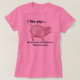 Eine lustige Illustration eines rosa Schweins mit einer humorvollen Botschaft. Im Text steht ... Ich mag Schweine, Hunde schauen zu uns hoch. Katzen sehen auf uns herab. Schweine Leckerei uns als Gleiche.
