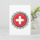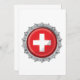 Die Schweizer Flagge auf einem Flaschenverschluss. Dieses Design sieht wirklich effektiv auf diese Einladung