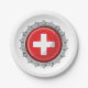 Die Schweizer Flagge auf einem Flaschenverschluss. Dieses Design wirkt auf diese Paper-Teller sehr effektiv