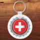 Die Schweizer Flagge auf einem Flaschenverschluss. Dieses Design wirkt auf diesem Schlüsselanhänger wirklich effektiv