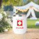 Der personalisierte Thermalweintumbler zeigt die Schweizer Flagge mit dem Wort SCHWEIZ unter sich in schneebedeckten Buchstaben. Die Flagge der Schweiz ist ein weißer Platz mit einem roten Kreuz in der Mitte. Über der Fahne befindet sich ein Ort für Ihren Namen in roten Buchstaben, sodass Sie Ihr Aussehen personalisieren oder ein spezielles Party erstellen können. Gut geeignet für Party für Wiedersehen, Clubveranstaltungen, Wiedersehen, Gruppenveranstaltungen und Party, die sich mit der Hauswärmung beschäftigen. Schönes Geschenk für jeden Anlass.