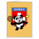 Diese hübsche kleine Panda Lieben, um auf dem Platz zu gehen und trifft ein paar Bälle. Panda spielt vor einer großen Fahne der Schweiz. Das ist ein großartiges Design für jeden, der Lieben Tennis zu spielen, Tennis zu beobachten oder nur Lieben niedliche Pandas.