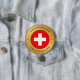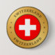 Die Schweizer Fahne ist in einen gerundeten Goldring der Imitate eingeprägt. Das Wort "Schweiz" steht ganz oben und unten im Design und hat einen gepressten Effekt. Das Paar von drei dekorativen Sternen zueinander, sind auch mit einem gepressten Effekt gestaltet.