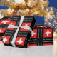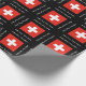 Elegante einfache Schweizer Flagge gegen einen grundlegenden schwarzen Hintergrund. Die schwarze Hintergrundfarbe kann zur Farbe Ihrer Wahl geändert werden.