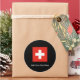 Elegante, einfache Schweizer Flagge vor einem schwarzen Hintergrund. Die schwarze Hintergrundfarbe kann in die Farbe Ihrer Wahl geändert werden.
