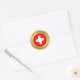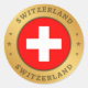 Die Schweizer Fahne ist in einen gerundeten Goldring der Imitate eingeprägt. Das Wort "Schweiz" steht ganz oben und unten im Design und hat einen gepressten Effekt. Das Paar von drei dekorativen Sternen zueinander, sind auch mit einem gepressten Effekt gestaltet.