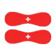 Dieses Design zeichnet sich durch die Fahne der Schweiz (offiziell die Schweizerische Eidgenossenschaft) aus, die ein Binnenland mitten in Europa ist. Es ist eine bundesstaatliche Republik, die in 26 Kantone aufgeteilt ist. Die Hauptstadt ist Bern, die größte Stadt Zürich. Das Land grenzt im Norden an Deutschland, im Osten an Österreich und Liechtenstein, im Süden an Italien und im Westen an Frankreich. Während der größte Teil der Landmasse aus den Alpen besteht, lebt der Großteil der Schweizer Bevölkerung auf dem Plateau, wo sich die meisten großen Städte und Wirtschaftszentren wie Zürich, Genf und Basel befinden. Die Schweiz hat vier offizielle Sprachen: Deutsch, Französisch, Italienisch und Rumänisch, eine weniger verbreitete romanische Sprache, die im Land gebürtig ist. Das Emblem des Roten Kreuzes ist die Schweizer Fahne mit den umgeschalteten Farben.