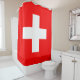 Dieses Design zeichnet sich durch die Fahne der Schweiz (offiziell die Schweizerische Eidgenossenschaft) aus, die ein Binnenland mitten in Europa ist. Es ist eine bundesstaatliche Republik, die in 26 Kantone aufgeteilt ist. Die Hauptstadt ist Bern, die größte Stadt Zürich. Das Land grenzt im Norden an Deutschland, im Osten an Österreich und Liechtenstein, im Süden an Italien und im Westen an Frankreich. Während der größte Teil der Landmasse aus den Alpen besteht, lebt der Großteil der Schweizer Bevölkerung auf dem Plateau, wo sich die meisten großen Städte und Wirtschaftszentren wie Zürich, Genf und Basel befinden. Die Schweiz hat vier offizielle Sprachen: Deutsch, Französisch, Italienisch und Rumänisch, eine weniger verbreitete romanische Sprache, die im Land gebürtig ist. Das Emblem des Roten Kreuzes ist die Schweizer Fahne mit den umgeschalteten Farben.