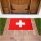 Dieses Design zeichnet sich durch die Fahne der Schweiz (offiziell die Schweizerische Eidgenossenschaft) aus, die ein Binnenland mitten in Europa ist. Es ist eine bundesstaatliche Republik, die in 26 Kantone aufgeteilt ist. Die Hauptstadt ist Bern, die größte Stadt Zürich. Das Land grenzt im Norden an Deutschland, im Osten an Österreich und Liechtenstein, im Süden an Italien und im Westen an Frankreich. Während der größte Teil der Landmasse aus den Alpen besteht, lebt der Großteil der Schweizer Bevölkerung auf dem Plateau, wo sich die meisten großen Städte und Wirtschaftszentren wie Zürich, Genf und Basel befinden. Die Schweiz hat vier offizielle Sprachen: Deutsch, Französisch, Italienisch und Rumänisch, eine weniger verbreitete romanische Sprache, die im Land gebürtig ist. Das Emblem des Roten Kreuzes ist die Schweizer Fahne mit den umgeschalteten Farben.
