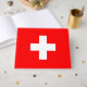 Dieses Design zeichnet sich durch die Fahne der Schweiz (offiziell die Schweizerische Eidgenossenschaft) aus, die ein Binnenland mitten in Europa ist. Es ist eine bundesstaatliche Republik, die in 26 Kantone aufgeteilt ist. Die Hauptstadt ist Bern, die größte Stadt Zürich. Das Land grenzt im Norden an Deutschland, im Osten an Österreich und Liechtenstein, im Süden an Italien und im Westen an Frankreich. Während der größte Teil der Landmasse aus den Alpen besteht, lebt der Großteil der Schweizer Bevölkerung auf dem Plateau, wo sich die meisten großen Städte und Wirtschaftszentren wie Zürich, Genf und Basel befinden. Die Schweiz hat vier offizielle Sprachen: Deutsch, Französisch, Italienisch und Rumänisch, eine weniger verbreitete romanische Sprache, die im Land gebürtig ist. Das Emblem des Roten Kreuzes ist die Schweizer Fahne mit den umgeschalteten Farben.