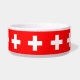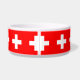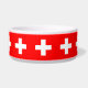 Dieses Design zeichnet sich durch die Fahne der Schweiz (offiziell die Schweizerische Eidgenossenschaft) aus, die ein Binnenland mitten in Europa ist. Es ist eine bundesstaatliche Republik, die in 26 Kantone aufgeteilt ist. Die Hauptstadt ist Bern, die größte Stadt Zürich. Das Land grenzt im Norden an Deutschland, im Osten an Österreich und Liechtenstein, im Süden an Italien und im Westen an Frankreich. Während der größte Teil der Landmasse aus den Alpen besteht, lebt der Großteil der Schweizer Bevölkerung auf dem Plateau, wo sich die meisten großen Städte und Wirtschaftszentren wie Zürich, Genf und Basel befinden. Die Schweiz hat vier offizielle Sprachen: Deutsch, Französisch, Italienisch und Rumänisch, eine weniger verbreitete romanische Sprache, die im Land gebürtig ist. Das Emblem des Roten Kreuzes ist die Schweizer Fahne mit den umgeschalteten Farben.