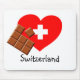 Die Schweiz ist berühmt für Schokolade und dieses lustige Souvenir Mousepad / Maus-Matte mit einem Block Schokolade auf der roten Schweizer Fahne in einer Herzform. Mousepad hat einen weißen Hintergrund und einen Slogan "Schweiz". Mmm.. lecker!