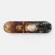 Schwelendes Schädel-Skateboard KRW. Cooler gotischer Schädel mit orangeroten Flammen und Wirbel des weißen und grauen Rauches