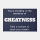 Sagt: "Du bist auf der Schwelle von GREATNESS stehend. Nimm dir einen Moment Zeit, um deinen Atem zu holen."