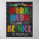 ARBEITET SCHWER UND IST IHNEN SEHR ANGENEHM! Ein großartiges Poster, um in einem Klassenzimmer oder Schulbüro aller Art zu hängen, um Kinder daran zu erinnern, hart zu arbeiten und schön zu sein! Zwei einfache Regeln, die einen weiten Weg gehen! Ein auffälliges Design mit lustigen, hellen und fröhlichen Farben.