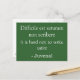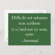 Eine türkisgrüne Postkarte mit lateinischer Phrase und die englische Übersetzung darunter. "Es ist schwer, Satire nicht zu schreiben", von Juvenal, der ein berühmter römischer Schriftsteller war.