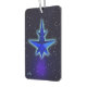 Ein einfaches, blau-farbenes 3D-Fraktal, das einem stilisierten Raumschiff ähnelt, das auf einem sternenförmigen Hintergrund überlagert ist. Konzentrische Ringe (Schwerkraft-Wellen?) gehen vom Raumschiff in das scheinbar leere Vakuum des Raumes aus. Eine hellblaue Aura umgibt die Raumsonde, vielleicht das Ergebnis schnellere als leichte Reisen. Passen Sie Ihren eigenen Text auf der Rückseite an.