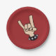 Schwermetall, Rock-and-Roll, Teufelhörner übergeben Zeichen mit einem schwarzes Leder verzierten Armband.