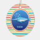 Coole, niedliche Kinder Ozean, Meeresleben, Themendesign mit Cartoon Schwertfisch auf farbenfrohen roten, orangefarbenen, gelben, grünen, blauen, weißen Regenbogenstreifen Muster.