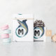 Ein mächtiger Schwertfisch, der aus einer blauen Welle springt. Die Welle hat eine hellblaue Innenfläche für ein Monogramm. Das "M" ist für Monogramm kurz und kann an Ihre Bedürfnisse angepasst werden.