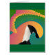 Schwertwal-Wal-Spion Hops zum Himmel, der in Leuchtorange, in Knickenten und in Grün wirbelt.