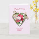 Eine romantische Geburtstagskarte. Ein Gemälde von Rose wird von einem vergoldeten goldenen Herz gerahmt. Gebt eurer Schwester einen Geburtstag mit einem hübschen Gemälde eines Straußes aus Rose.