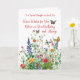 Diese durchdachte Geburtstagskarte ist eine wunderbare Möglichkeit, Ihre zukünftige Schwiegertochter zu feiern. Mit einer zarten Wildblume und Schmetterlingsdesign symbolisiert sie die Wärme und das Glück, die sie mit sich bringt. Im Inneren empfängt Sie eine herzliche Botschaft für einen schönen Geburtstag und ein frohes Jahr. Ein perfekter Weg, um ihr Gefühl willkommen und geschätzt zu machen, wenn sie Teil der Familie wird.